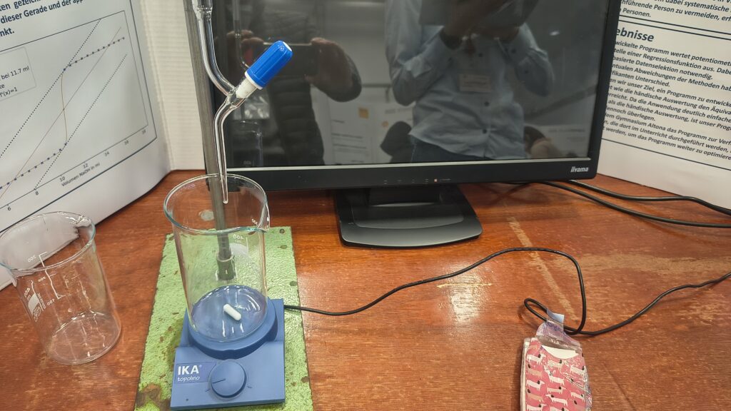 Beim Vergleich mit der klassischen händischen Auswertung zeigte sich, dass RAPTOR mindestens genauso genau und häufig sogar etwas genauer arbeitet. Zudem liefert das Programm konsistente Ergebnisse und reduziert mögliche menschliche Fehler. Insgesamt zeigt die Arbeit eindrucksvoll, dass RAPTOR eine leistungsfähige, praktische und zukunftsweisende Alternative zur händischen Auswertung von Titrationen darstellt. Diese Software wird zukünftigen Schülerinnen und Schüler in unserer CTA-Ausbildung am Gymnasium Altona bei der Auswertung potentiometrischer Analysen deutlich unterstützen.