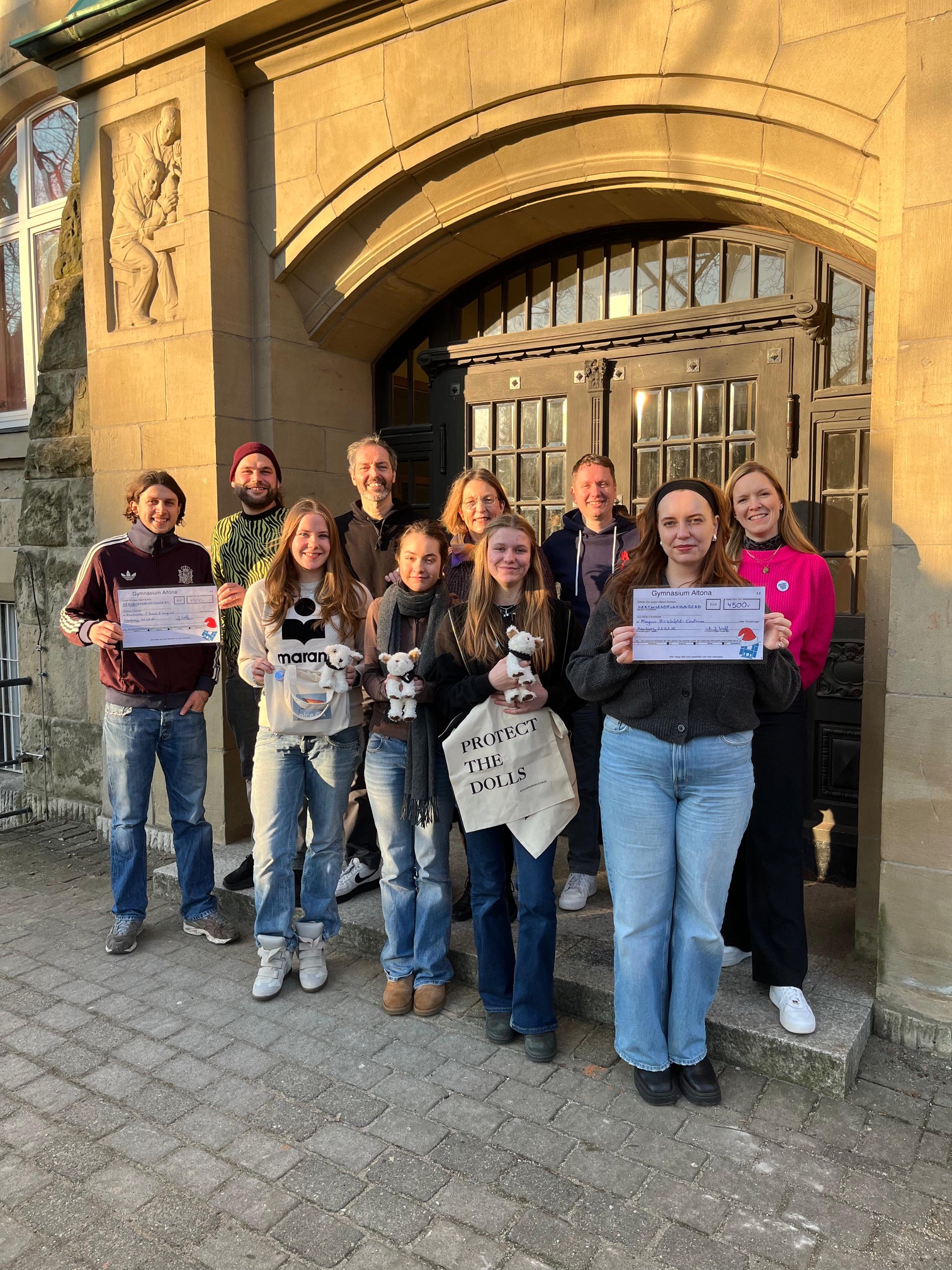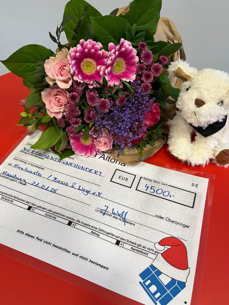 Als Max, Pablo und Malte vom Hirntoaster/Kids-Team des Basis&Woge e.V. uns am 22.01.2026 zur Spendenübergabe am Gymnasium Altona besuchten, fühlte es sich fast wie ein Treffen von alten Freunden an, die sich nach langer Zeit wiedersehen. Mit großer Dankbarkeit und wertschätzenden Worten nahmen sie den Scheck über 4500€, übergeben durch die SV-Mitglieder Hedda Martens, Philine Hoffmann, Djuna Henkel entgegen. Vom Magnus-Hirschfeld-Centrum kam auch in diesem Jahr der Vorstandsvorsitzende Torsten zusammen mit seiner Kollegin Anna, die uns auch am Tag der Vielfalt unterstützte. Stellvertretend für das MHC nahmen die zwei einen Scheck in derselben Spendenhöhe, 4500€, in Empfang. Sie brachten ihre große Freude und Dankbarkeit zum Ausdruck und berichteten von aktuellen Arbeitsfeldern und Angeboten ihrer Jugendarbeit. Über die vergangenen Jahre ist dieses jährliche Treffen im Hinblick auf die Verbundenheit gewachsen, was sie auch darin zeigt, dass das Hirntoaster-Team sich in einer Projektwoche einbrachte und das MHC-Team ein Angebot beim Tag der Vielfalt am 28.01.2026 machte.